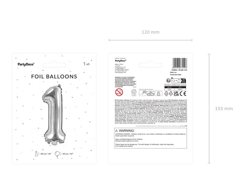Balon foliowy Cyfra ''1'', 35cm, srebrny