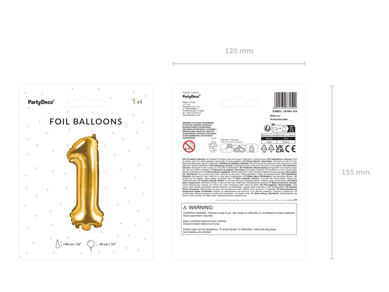 Balon foliowy Cyfra ''1'', 35cm, złoty