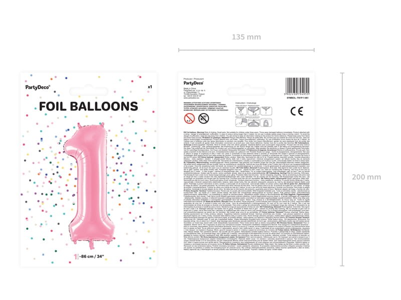 Balon foliowy Cyfra ''1'', 86cm, różowy