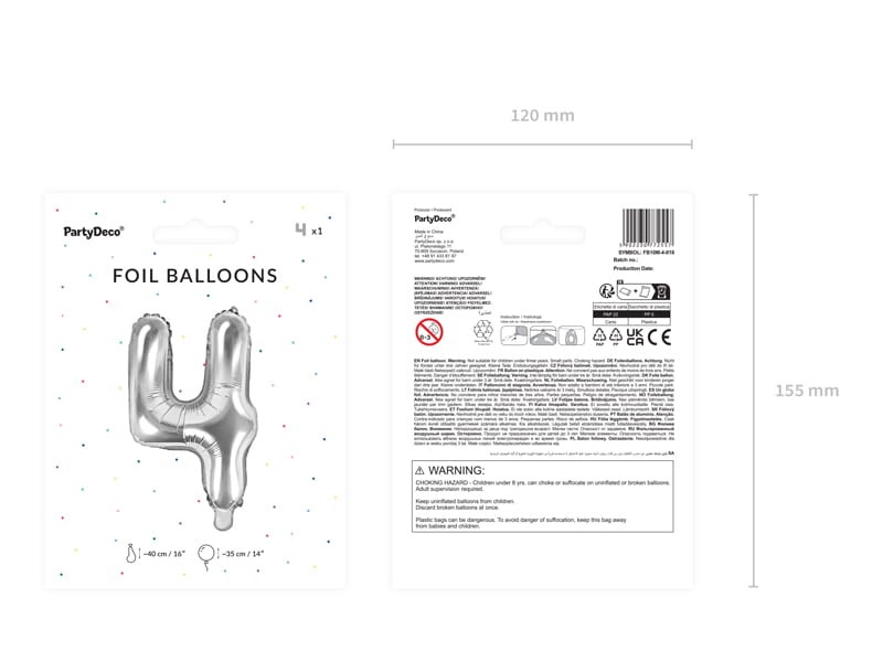 Balon foliowy Cyfra ''4'', 35cm, srebrny