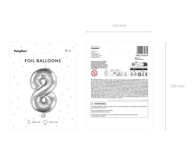 Balon foliowy Cyfra ''8'', 35cm, srebrny