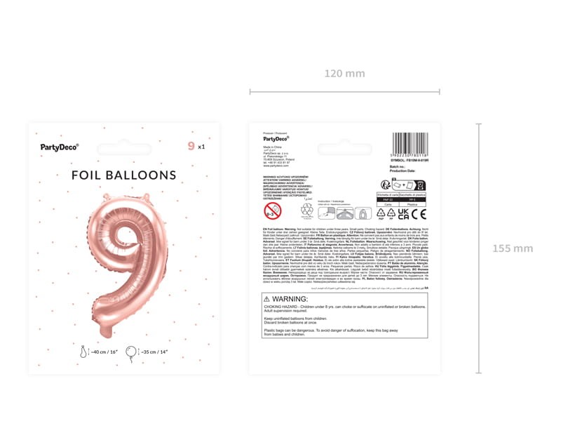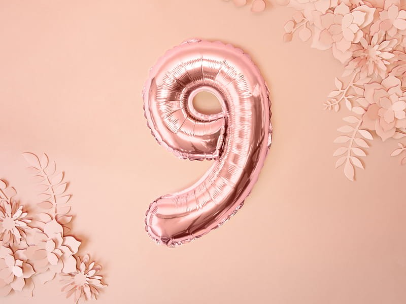 Balon foliowy Cyfra ''9'', 35cm, różowe złoto