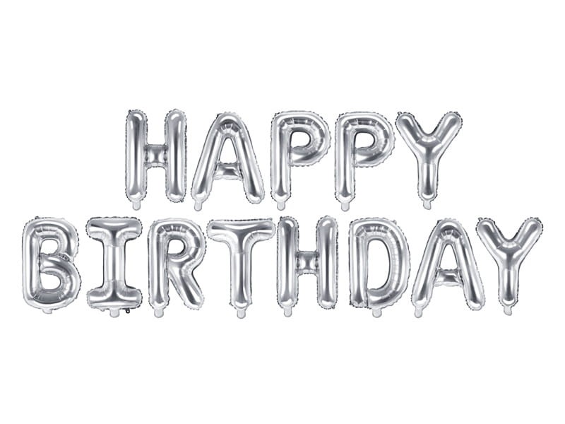 Balon foliowy Happy Birthday, 340x35cm, srebrny