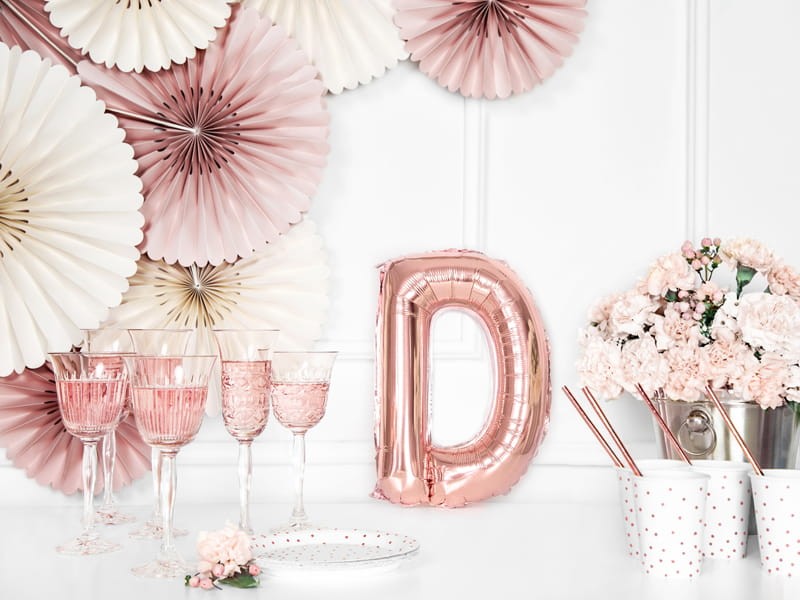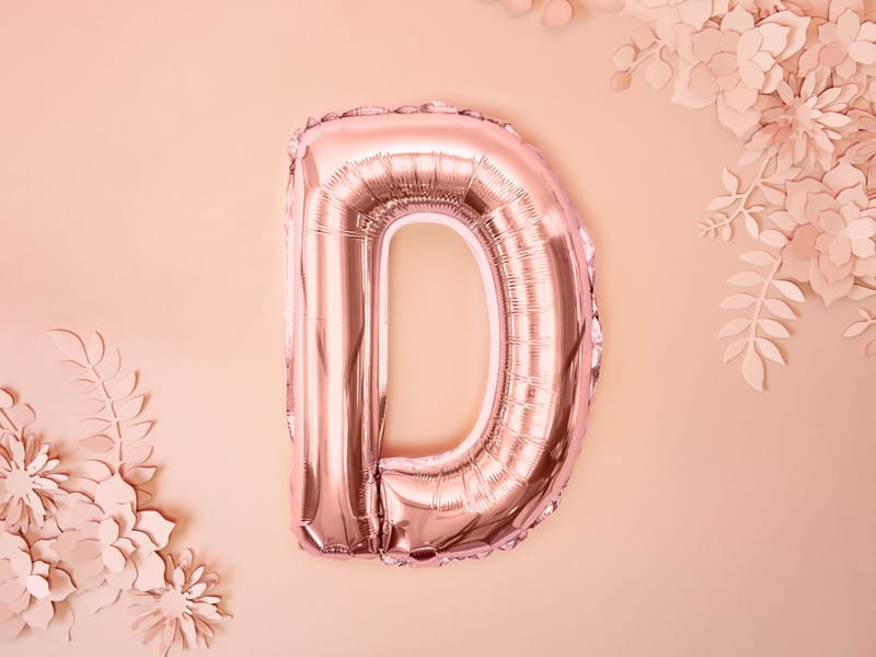 Balon foliowy Litera ''D'', 35cm, różowe złoto