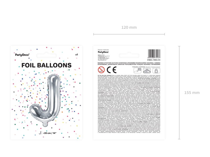 Balon foliowy Litera ''J'', 35cm, srebrny