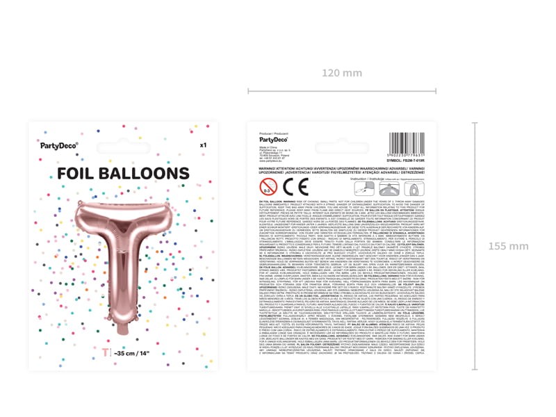 Balon foliowy Litera ''T'', 35cm, różowe złoto