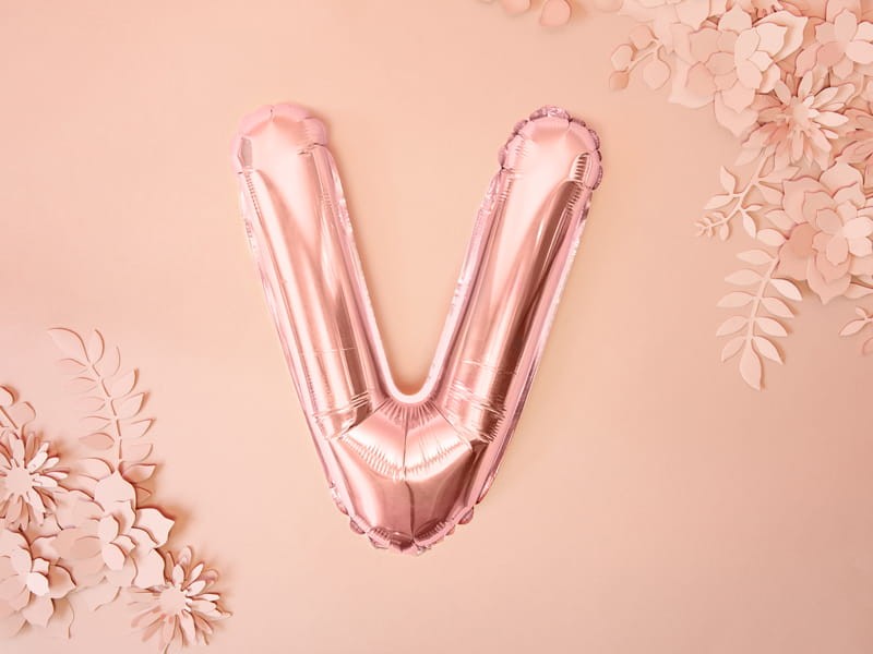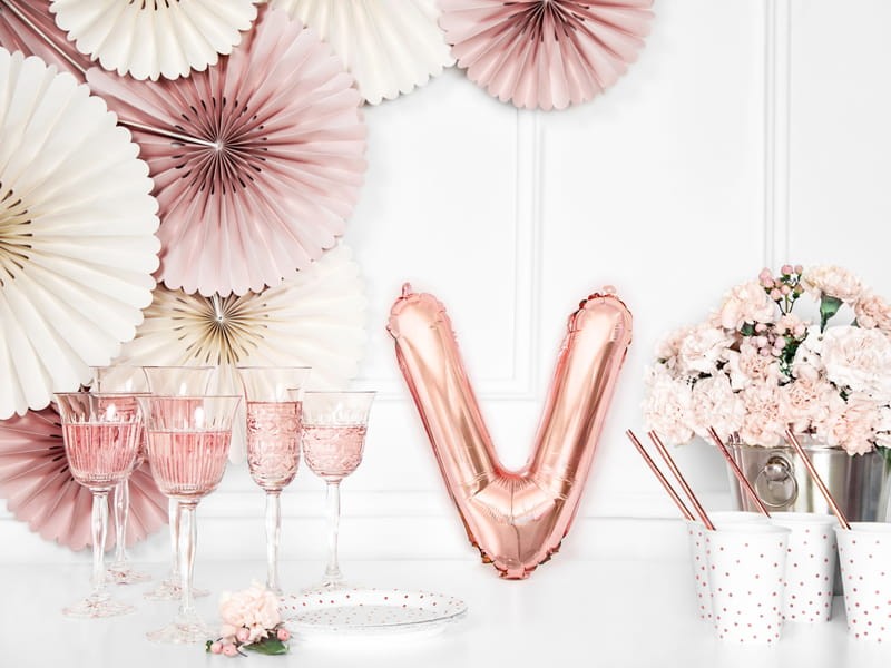 Balon foliowy Litera ''V'', 35cm, różowe złoto