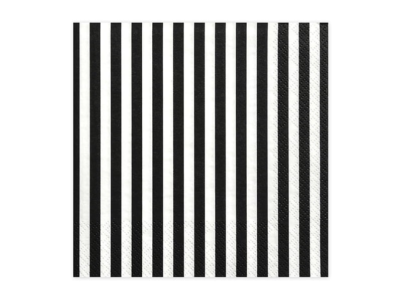 Serwetki trójwarstwowe Paski w kolorze białym z czarnym nadrukiem, wymiary 33x33 centymetry. (1 op. / 20 szt.)