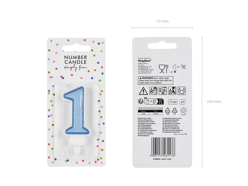 Świeczka urodzinowa Cyferka 1, niebieski, 7cm