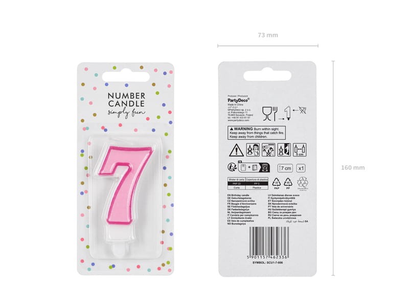 Świeczka urodzinowa Cyferka 7, różowy, 7cm