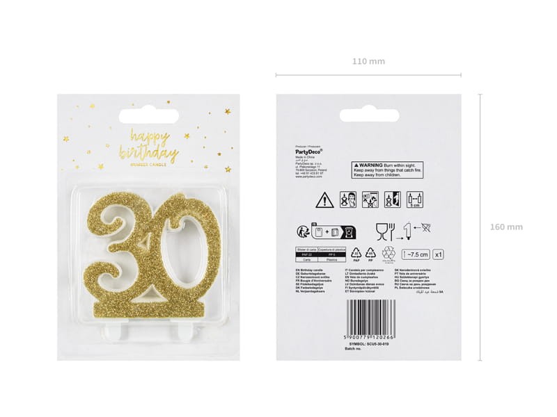 Świeczka urodzinowa liczba 30, złoty 7.5cm