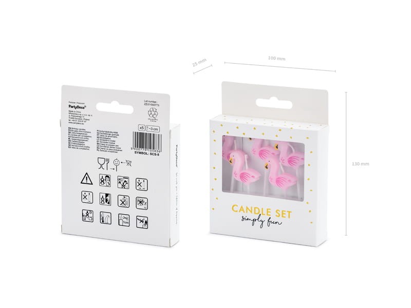 Świeczki urodzinowe Flamingi, 3cm (1 op. / 5 szt.)