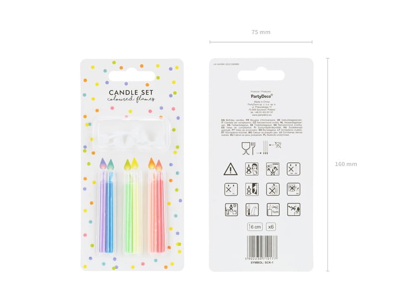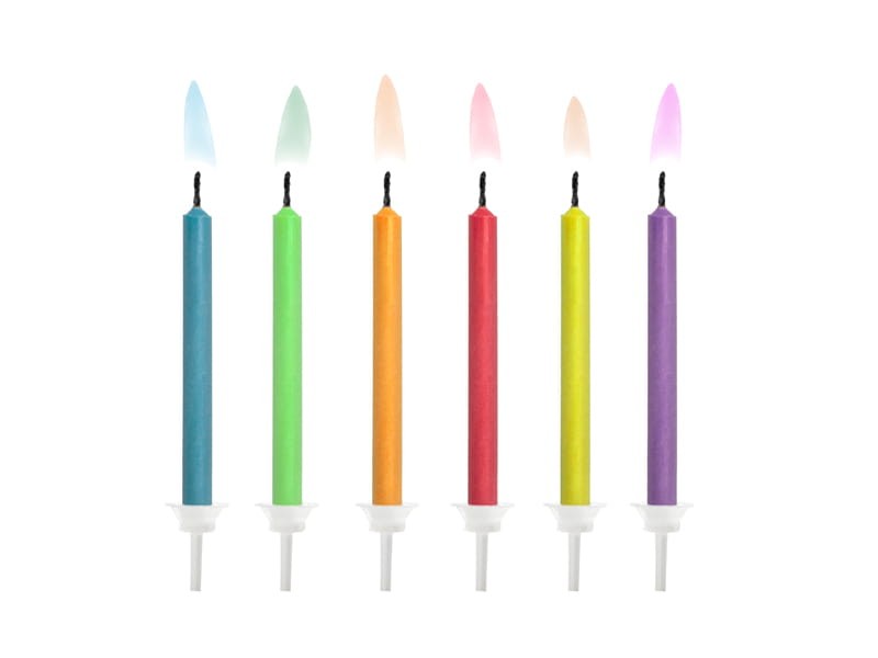 Świeczki urodzinowe Kolorowe Płomienie, mix (1 op. / 6 szt.)
