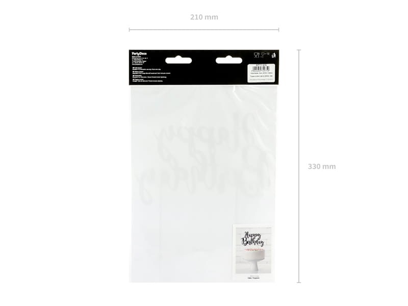 Topper na tort Happy Birthday, czarny, 22,5cm